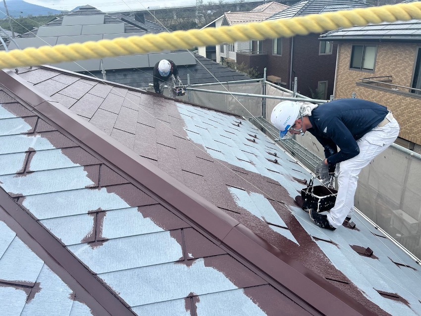 塗膜が「防水層」として機能し、雨水や紫外線から屋根材を守る大切な役割を果たしています😊